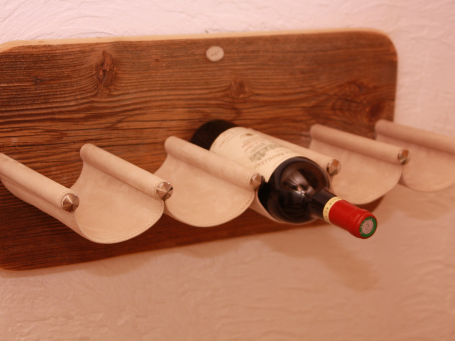 Porte-Bouteilles avec axes en inox massif, cuir doublé tendu...